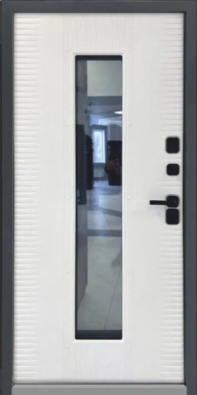 Выполнена из холоднокатанной стали марки СТ08ПС, на которую наносят цинковый грунт. между наружной и внутренней сторонами двери обеспечивается термовставкой имеющей низкий коэффициент теплопроводности, расположенным по всему периметру полотна и короба. Наличие термовставки в дверной коробке и дверно